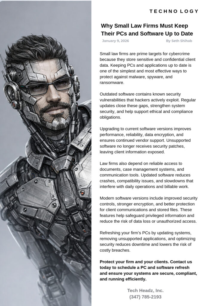 Law Firms should keep their PC's and Software up-to-date January 9, 2026 Last updated : January 9, 2026 admin